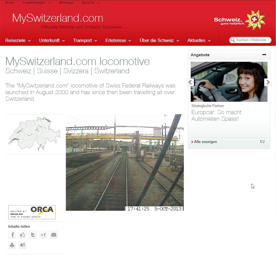 Das Pionierprojekt “Traincam” war ein einzigartiges Webcam-Projekt für MySwitzerland.com (Schweiz Tourismu) - Fotos aus dem Lokomotiven Führerstand